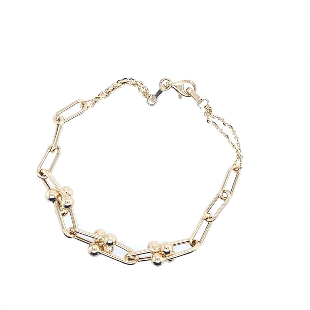 14KY Gold Fancy Links Light Weight Chain Bracelet