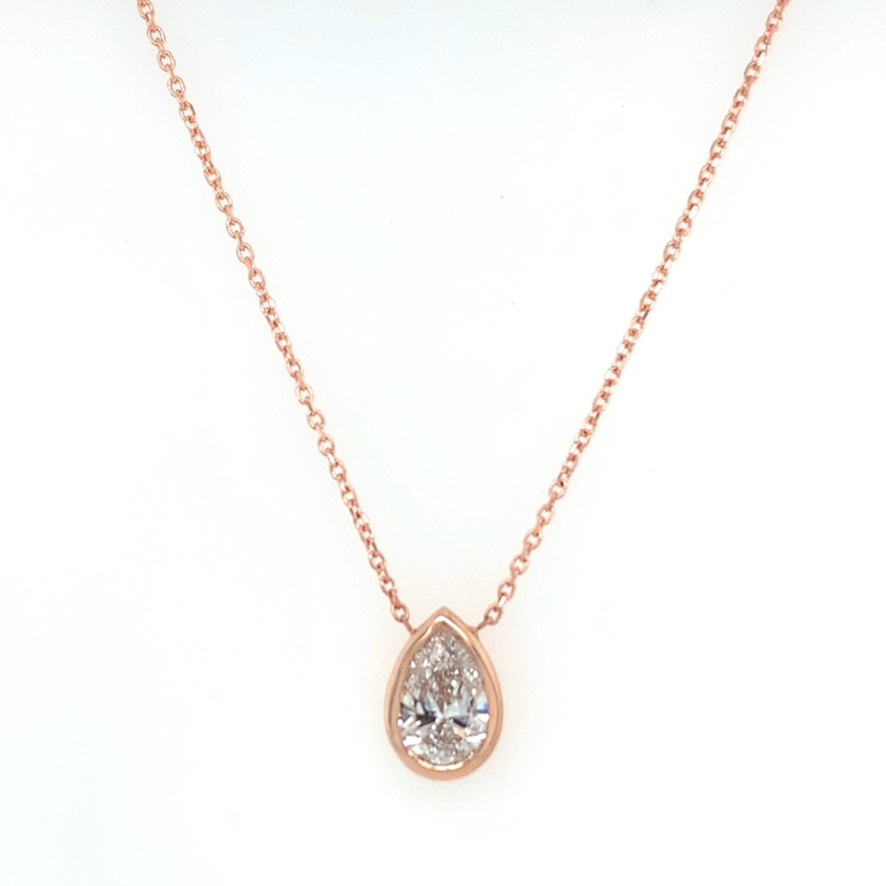 14K Rose Gold Bezel Set Solitaire Pear Shape Diamond Necklace