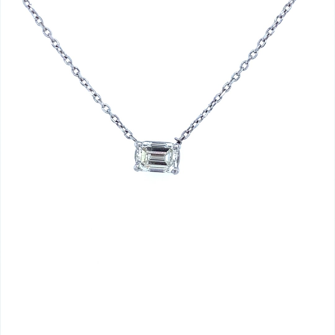 Platinum Emerald Cut Diamond Solitaire Necklace